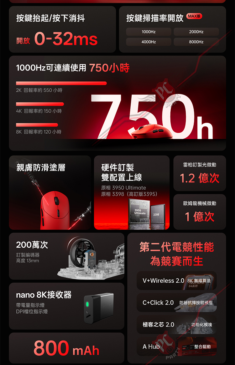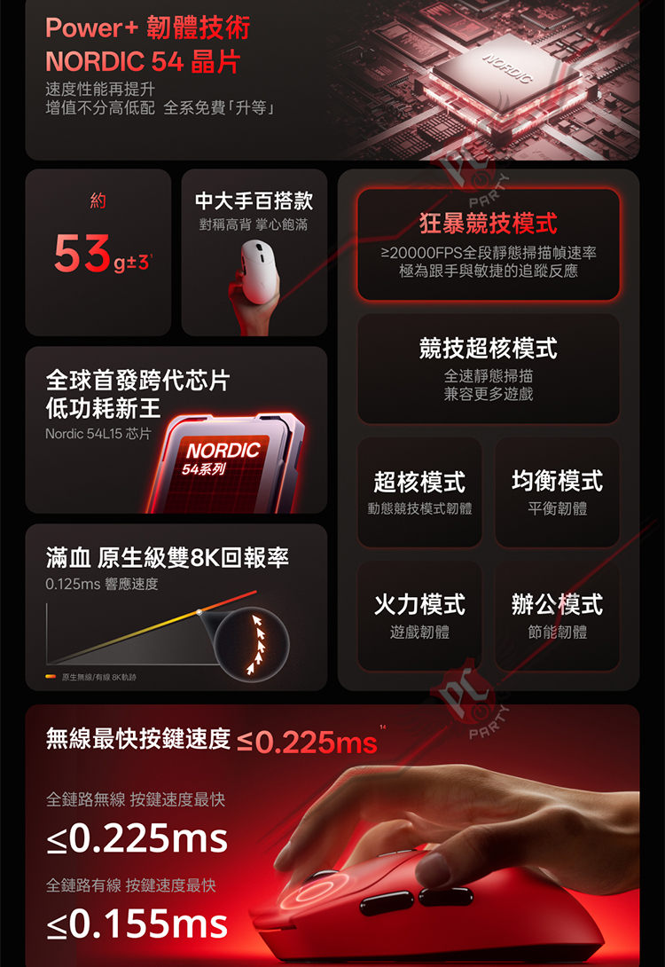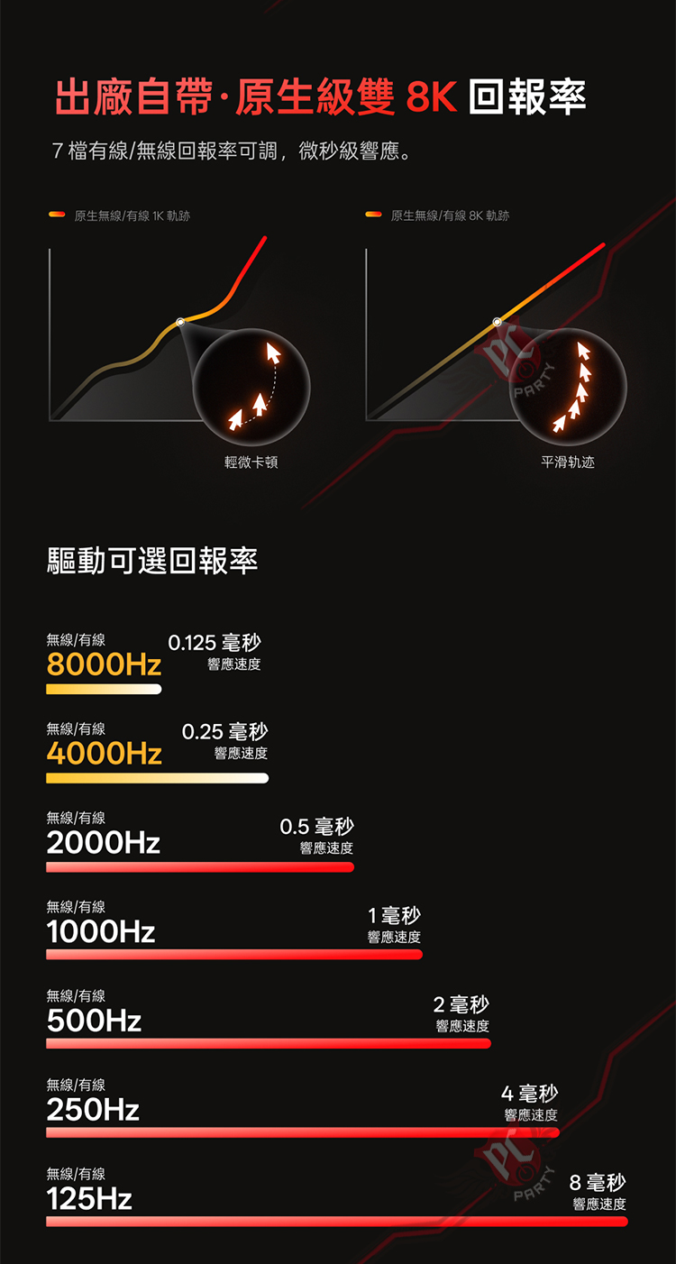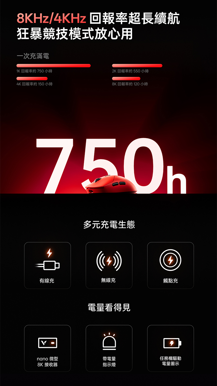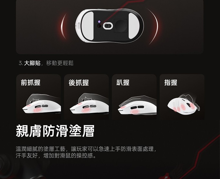 輕量雙模・雙 8K 人體工學電競滑鼠