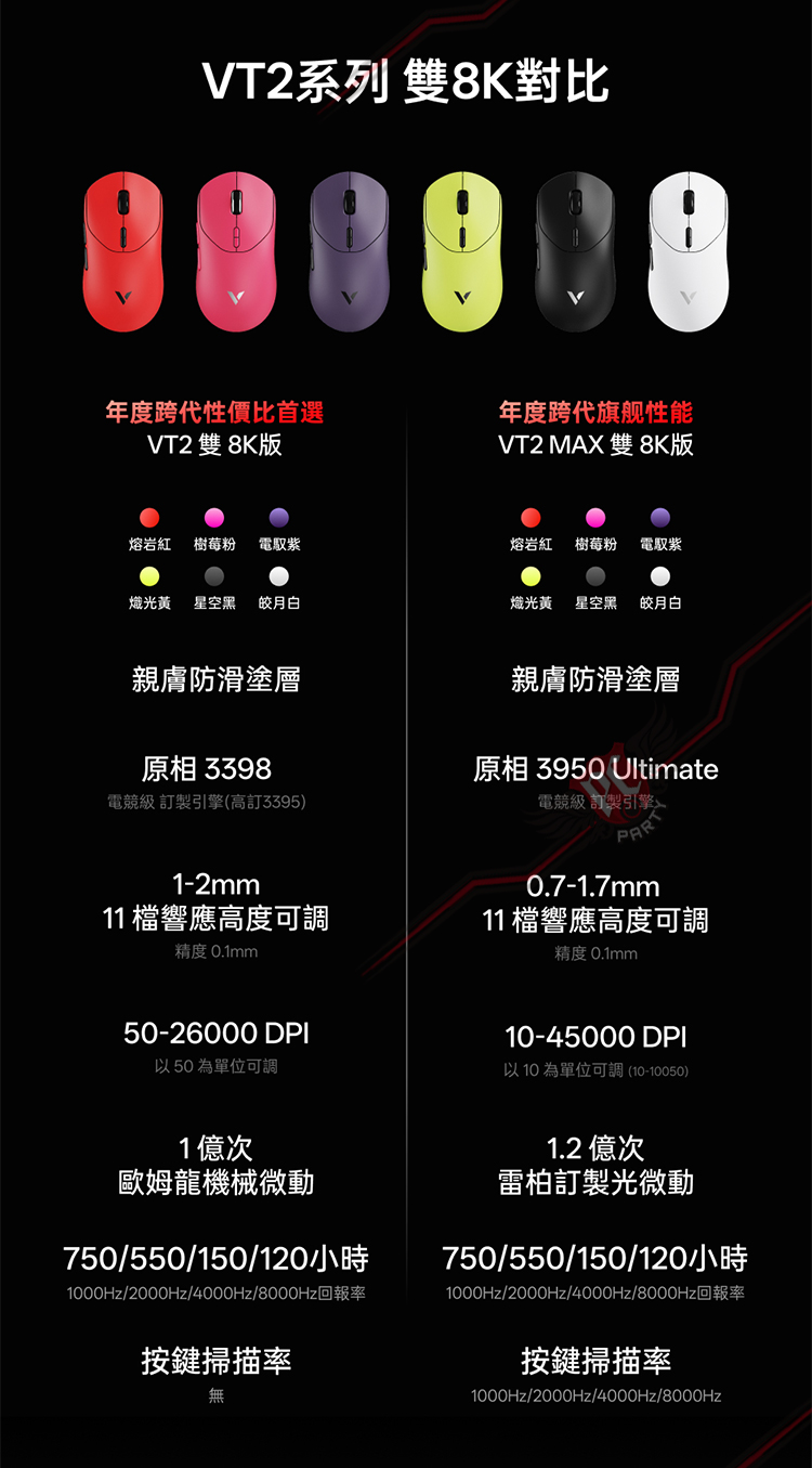 【雷柏 Rapoo VT2 MAX】 輕量雙模・雙 8K 人體工學電競滑鼠 星空黑 電馭紫
