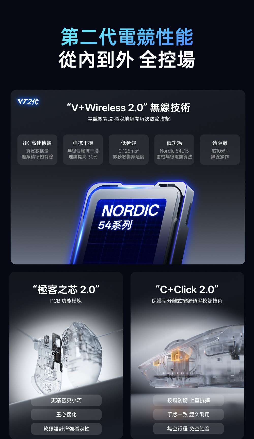 ‑ 支援 2.4 GHz 無線 + 有線 USB‑C,可任意切換更靈活。