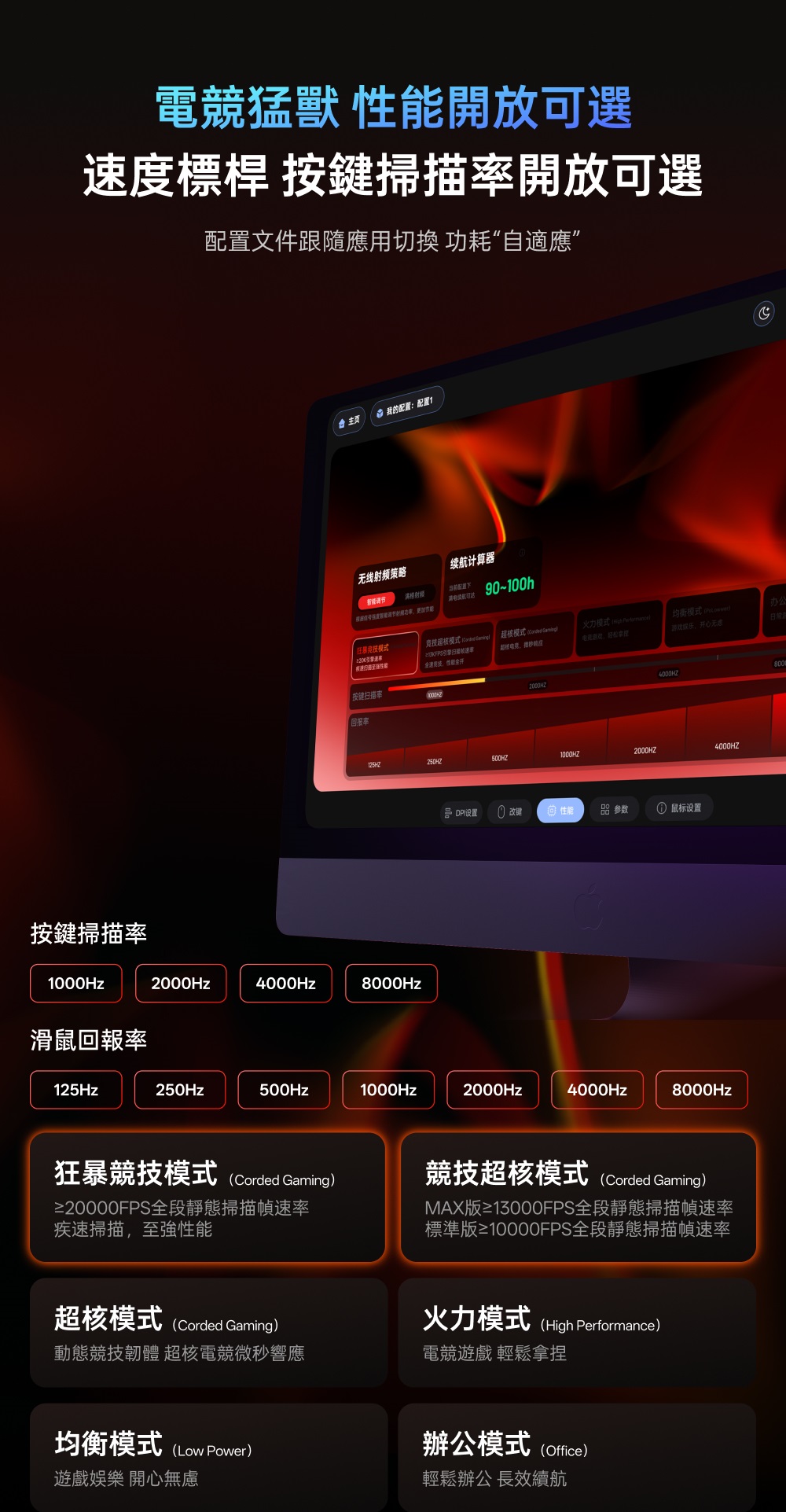 註:完整功能(按鍵程式設定等)建議搭配官方軟體與相容系統