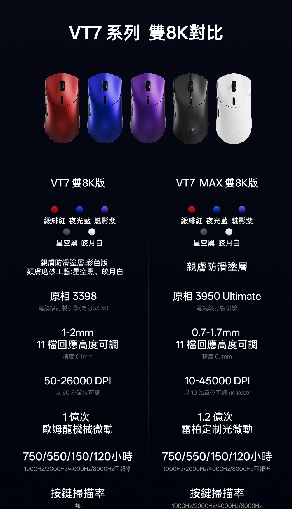 雷柏Rapoo VT7 MAX 輕量雙模雙8K人體工學電競滑鼠