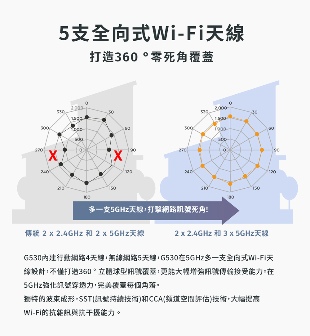 •內建5G/LTE天線*4,內建Wi-Fi無線天線*5