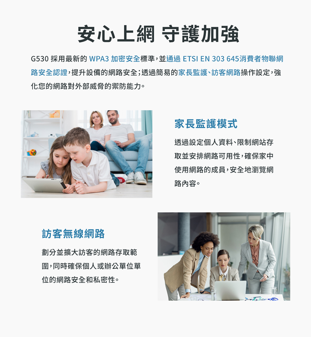 •支援家長控制,訪客網路,VPN設定和SPI防火牆功能