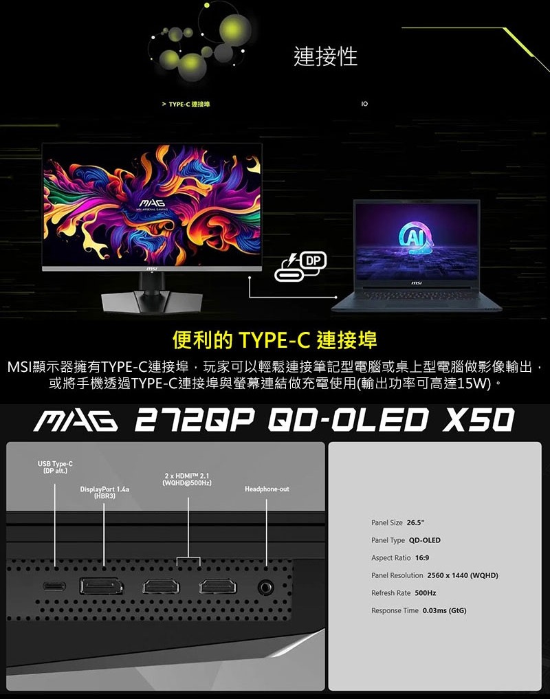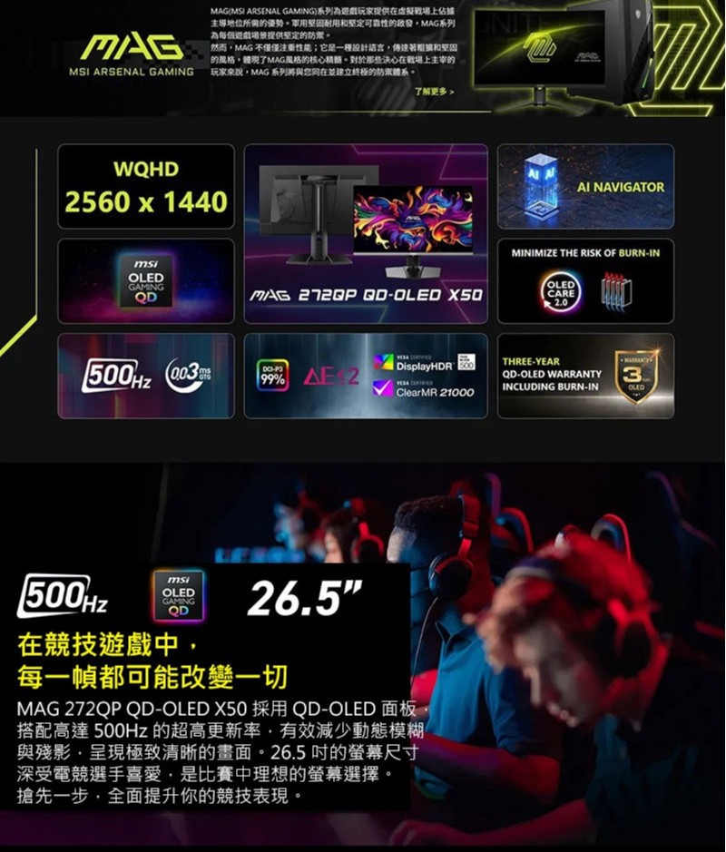 極速覺醒!MSI MAG 272QP QD-OLED X50 登場