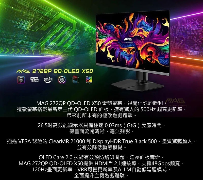 ️ MSI MAG 272QP QD-OLED X50(26.5吋)