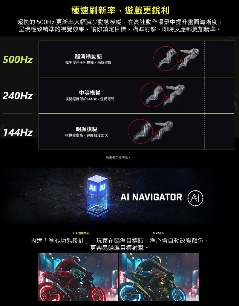 ⚡ 500Hz 超高刷新率 + 0.03ms 極速反應