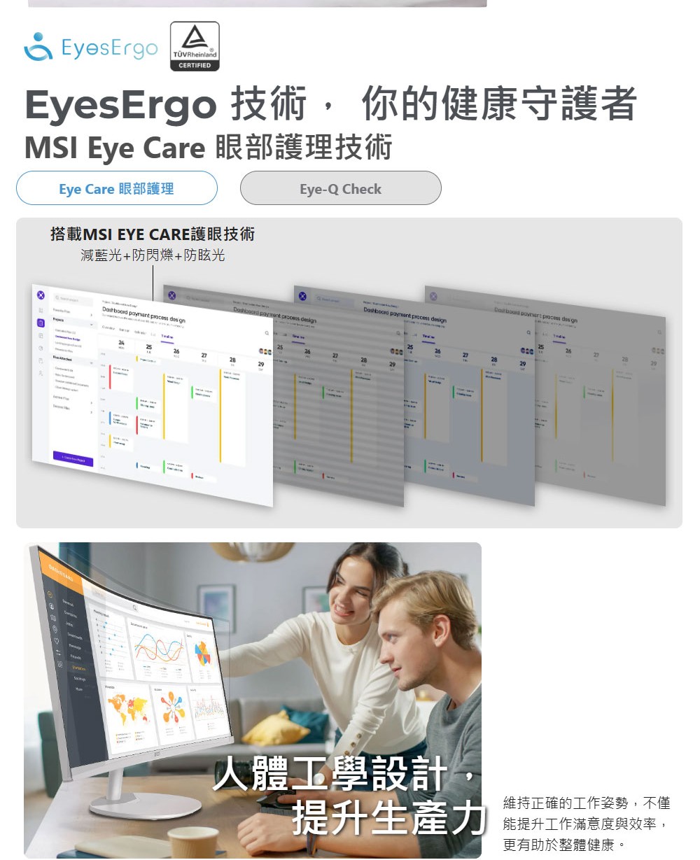 ✔️ MSI EyesErgo 護眼技術,長時間使用更舒適