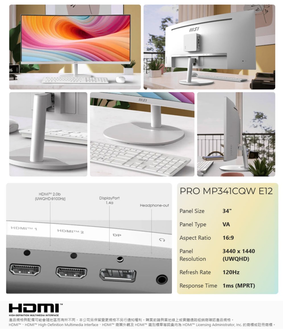? MSI PRO MP341CQW E12 34吋曲面螢幕 ?