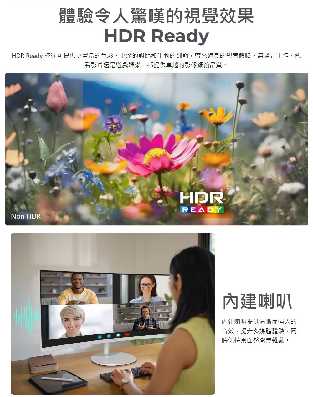 ✔️ 內建雙喇叭,免外接更方便