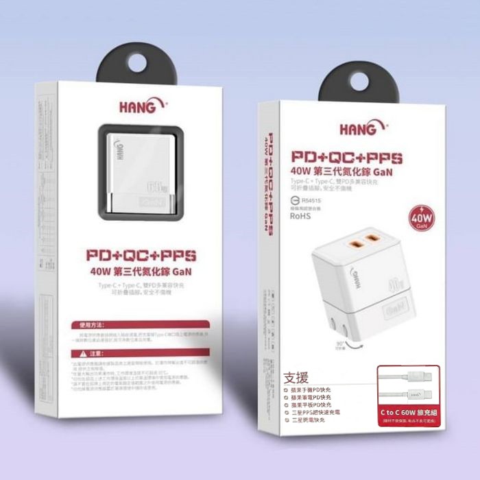 HANG C68雙C摺疊40W 氮化鎵(PD+QC+PPS)