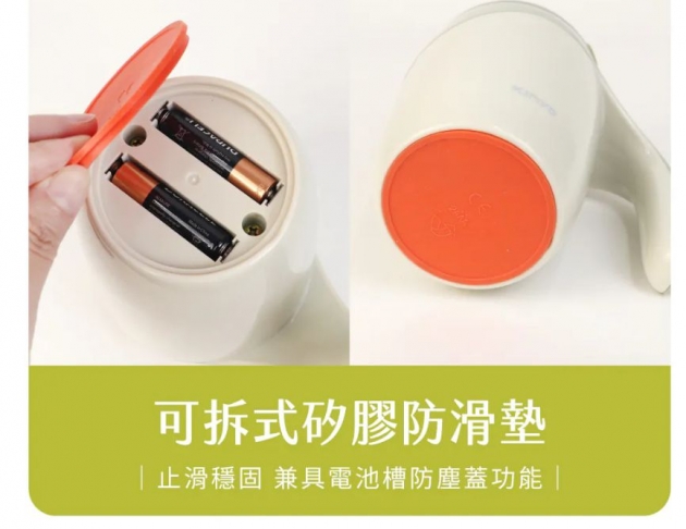 可拆式杯底止滑矽膠墊,電池槽防塵蓋兩用設計