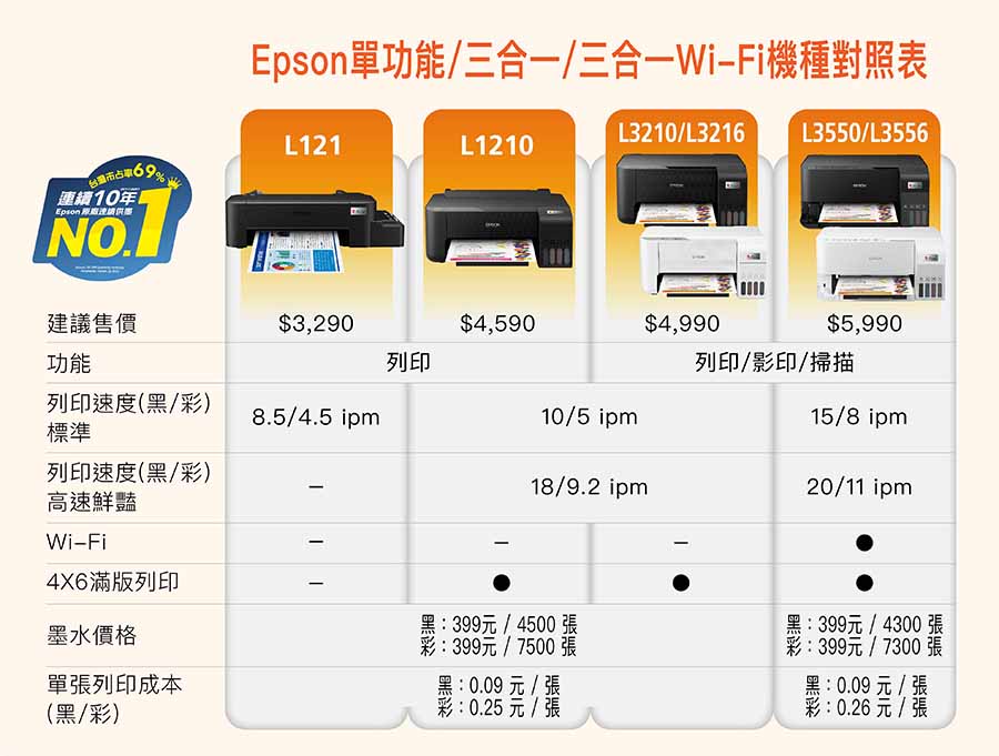 省:成本更低省,黑色列印單張 0.09 元、彩色列印單張0.25 元
