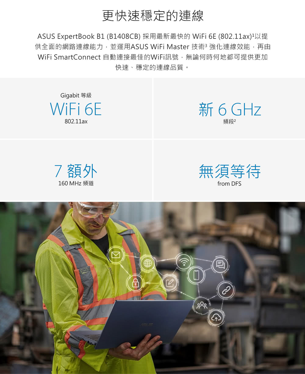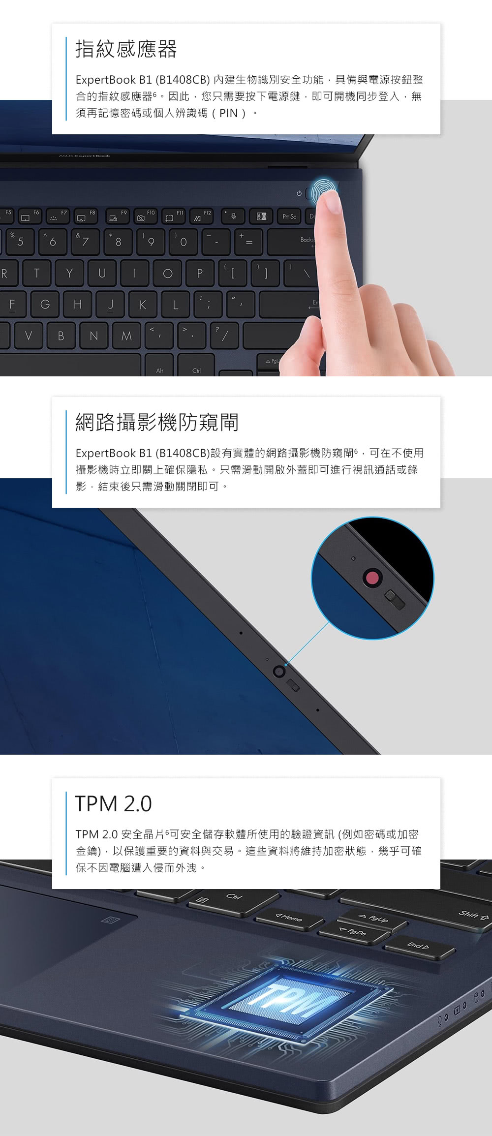 ASUS ExpertBook B1 顧及您全面的商務需求,無論是新創公司、教育機構或各種規模的企業, ExpertBook B1都是最明智的專業配備。不僅擁有強大的效能、軍規級的耐用性及各種客製功能,更配備完整的I/O連接埠、便利的指紋辨識功能、更快速的 WiFi 6 與最新AI 音訊降噪技術。ExpertBook B1能完美提升您的工作成效。