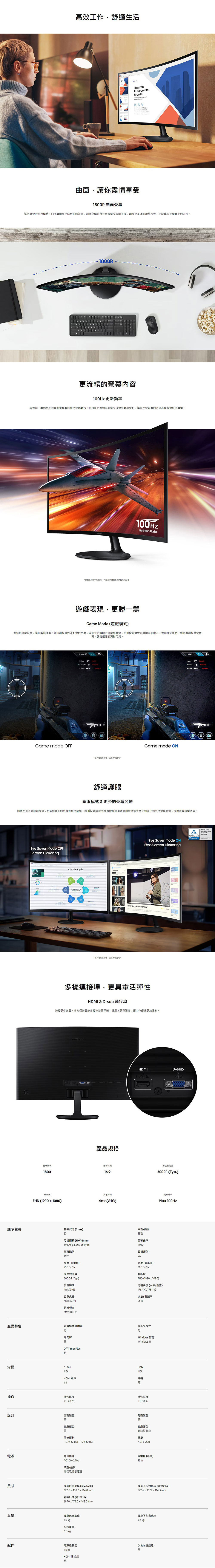 三星SAMSUNG S27D362GAC 曲面護眼低藍100HzVA液晶螢幕