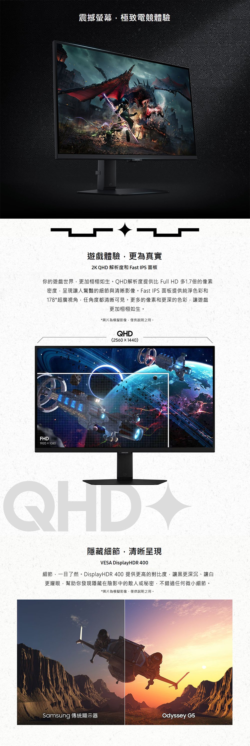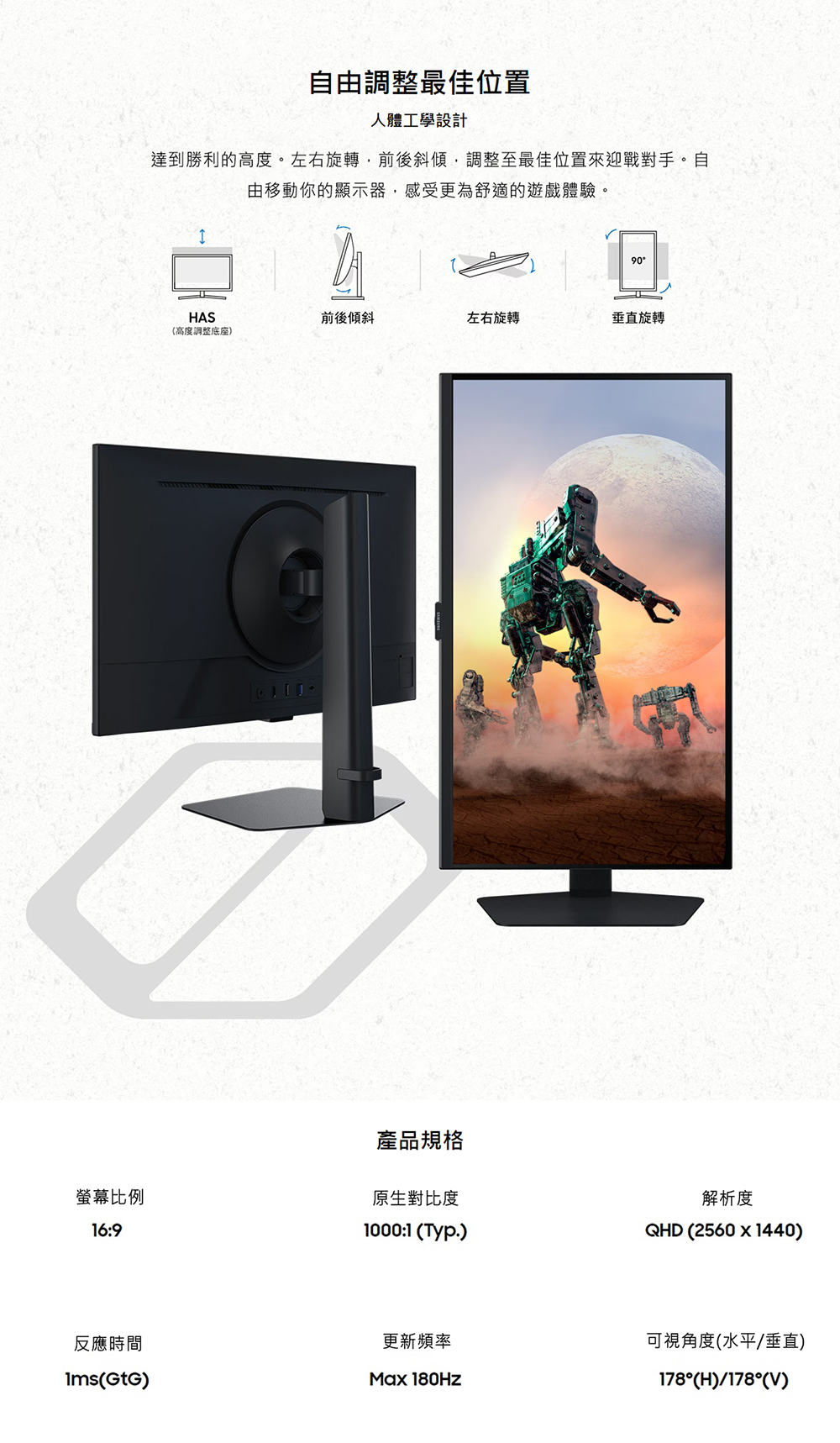 三星SAMSUNG S27DG502EC Odyssey G5 2K180Hz 1ms可升降旋轉IPS電競螢幕