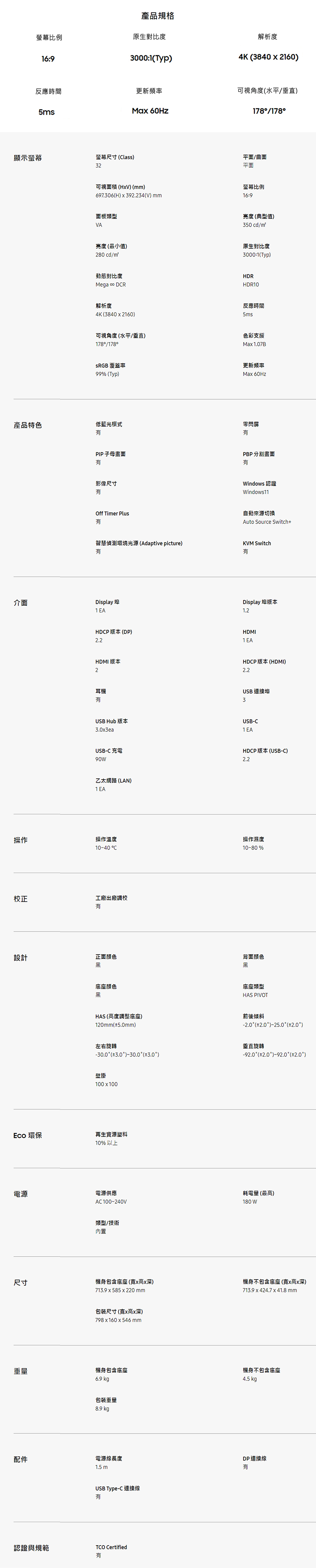 三星SAMSUNG S32D806UAC ViewFinity S8 4K 90W創作者色彩專業螢幕