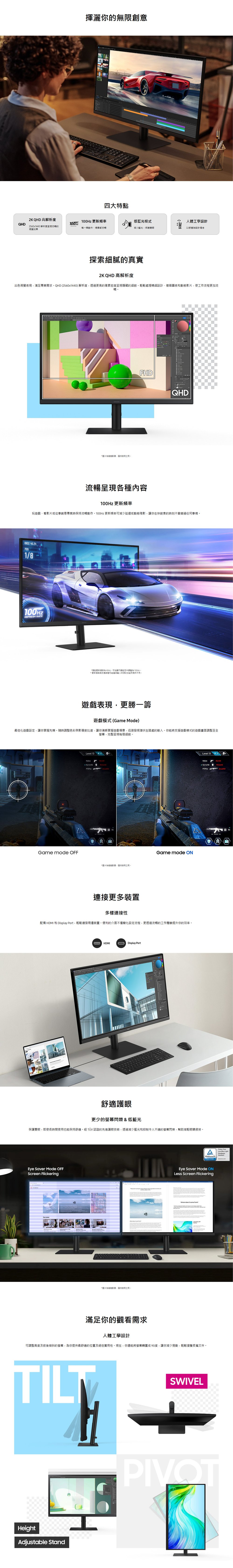 J0069434 三星SAMSUNG S27F612EAC ViewFinity S6 2K 100Hz旋轉升降創作者色彩專業螢幕