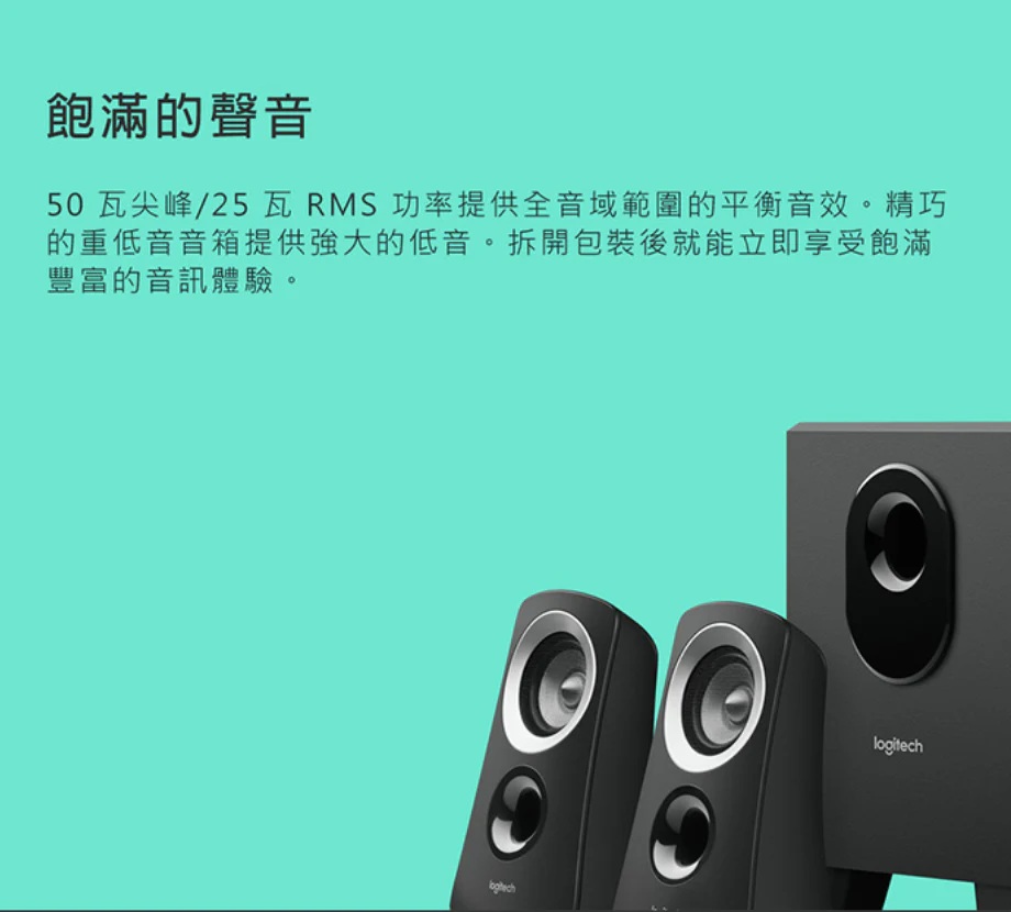 - 享受羅技Z313音箱帶來的震撼音效,讓您沉浸在音樂與遊戲的世界中。