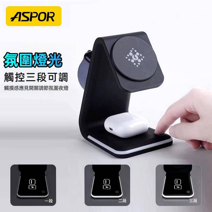 ASPOR 急速15W 四合一磁吸無線充電座(Magsafe/夜燈/iPhone/Watch/Airpods)