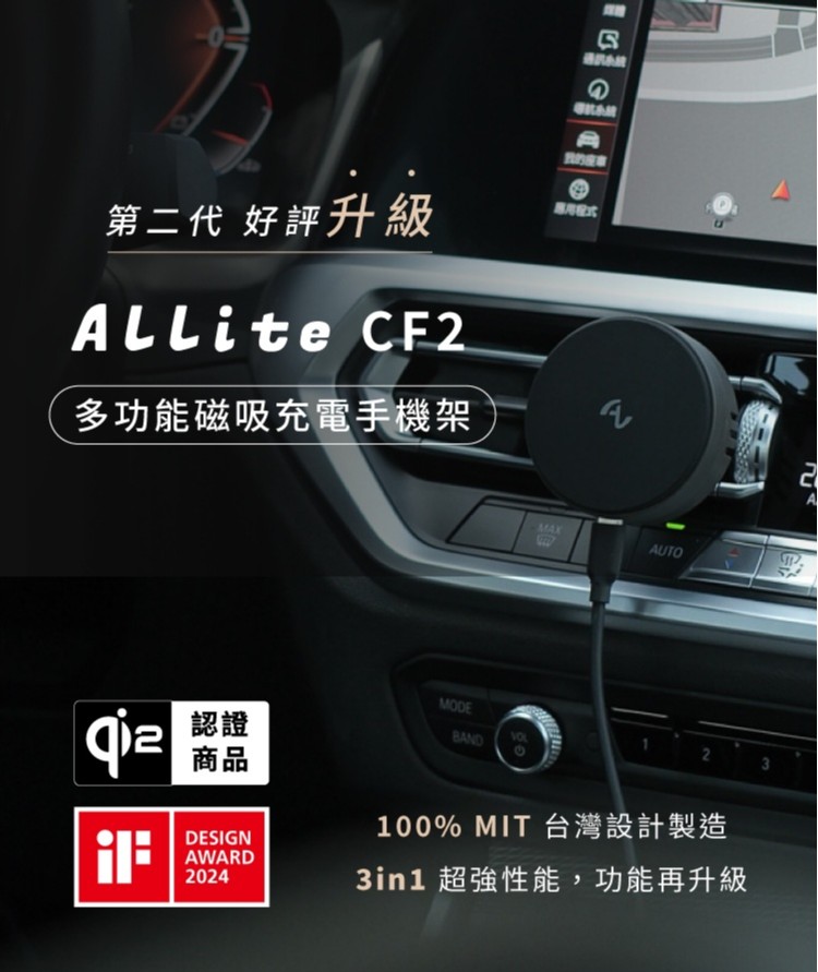 Allite CF2 多功能 MagSafe 磁吸充電車用手機架 |支援 Qi2