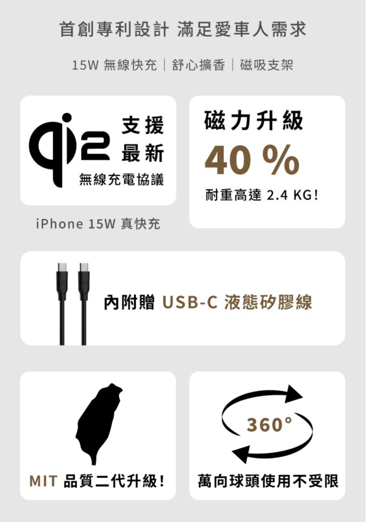 首創 3-in-1 無線充電・磁吸支架・舒心擴香一次到位!
