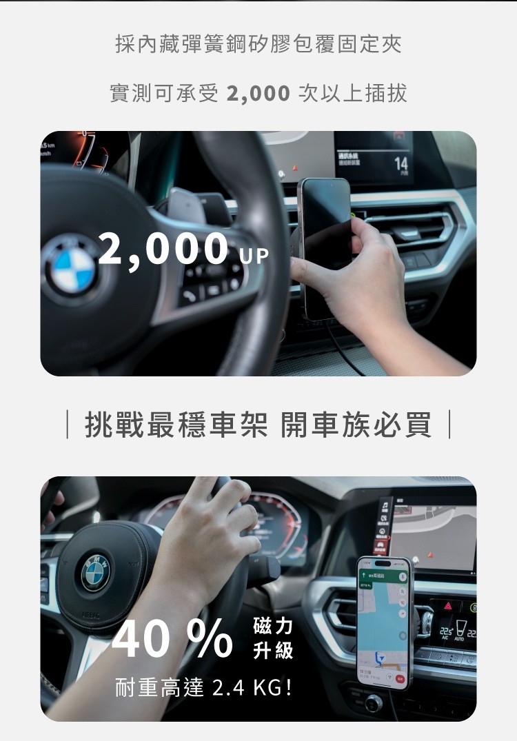 ✔︎ 磁力 40% 升級,實測過彎山路穩固牢靠