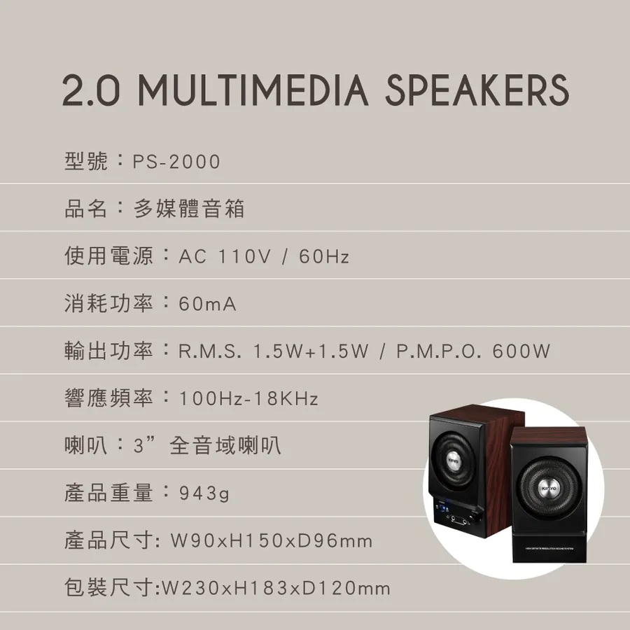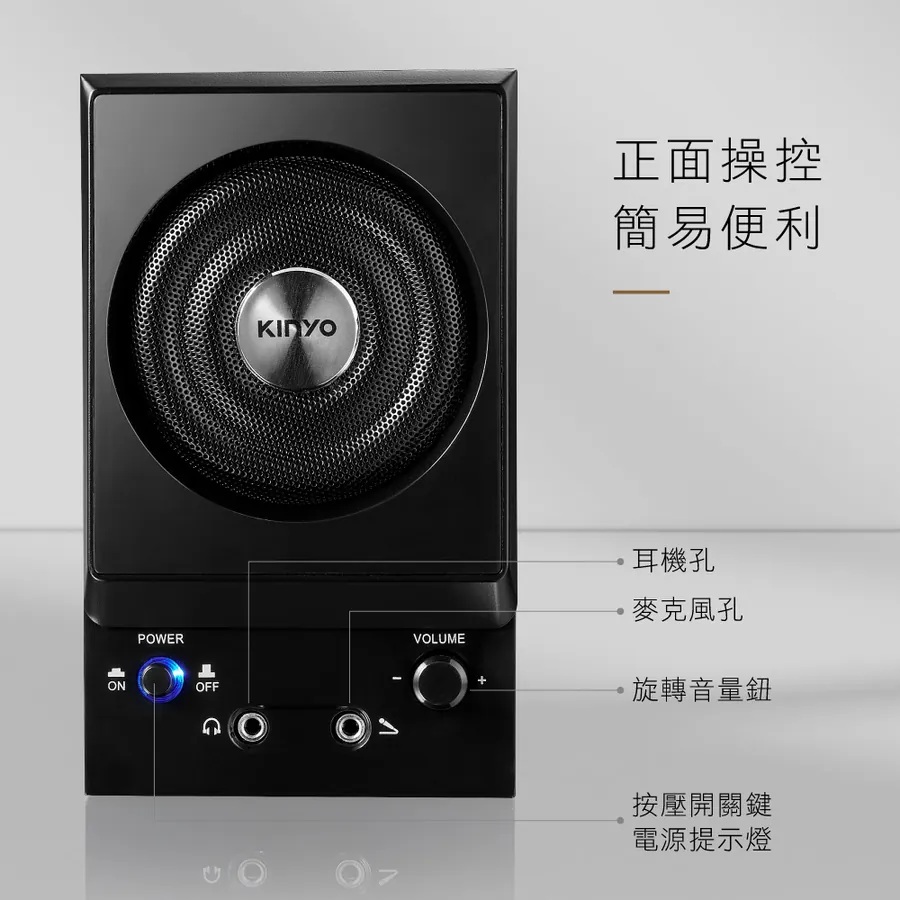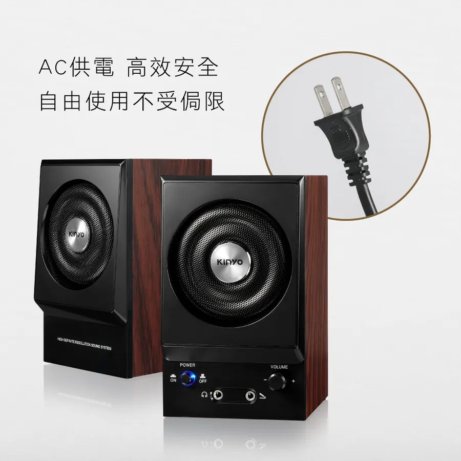 【KINYO】二件式木質立體擴大音箱 (PS) 全木質 耳機 麥克風插孔 |電腦喇叭 2.0音箱