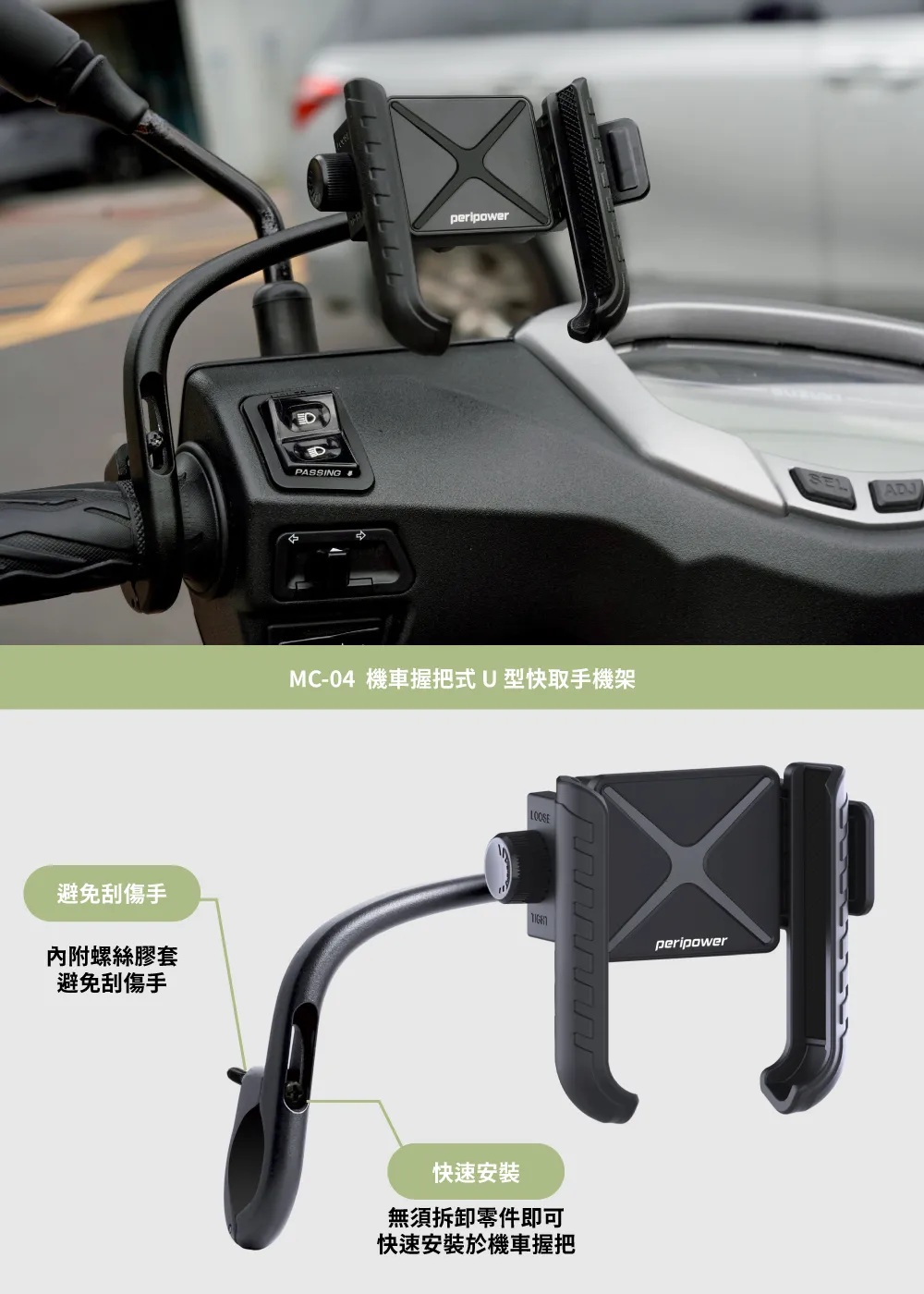 PeriPower MC-04 機車握把式 U 型快取手機架