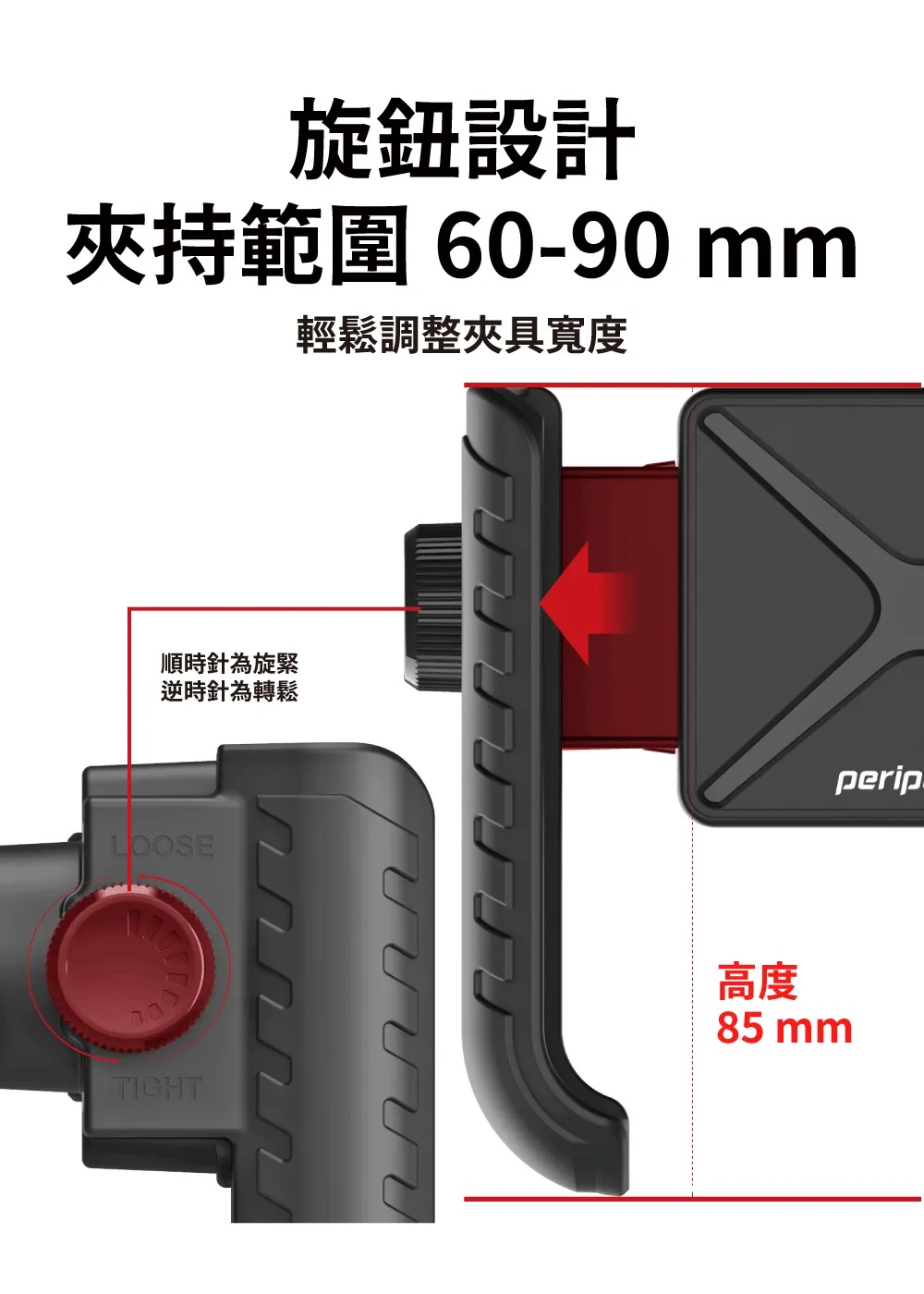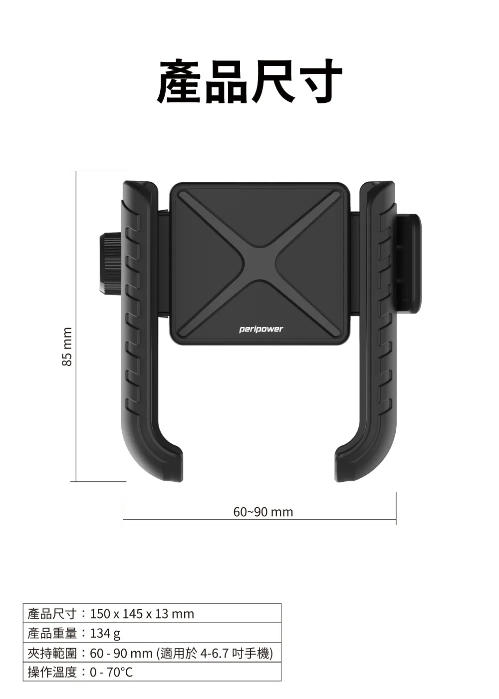 適用手機寬度範圍約 58–85mm(約 4 吋至 6.7 吋手機),支援大多數市售智慧型手機,不需擔心手機不合。