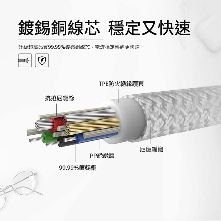 99.99%鍍錫銅線芯工藝 穩定充電 高品質 抗氧化