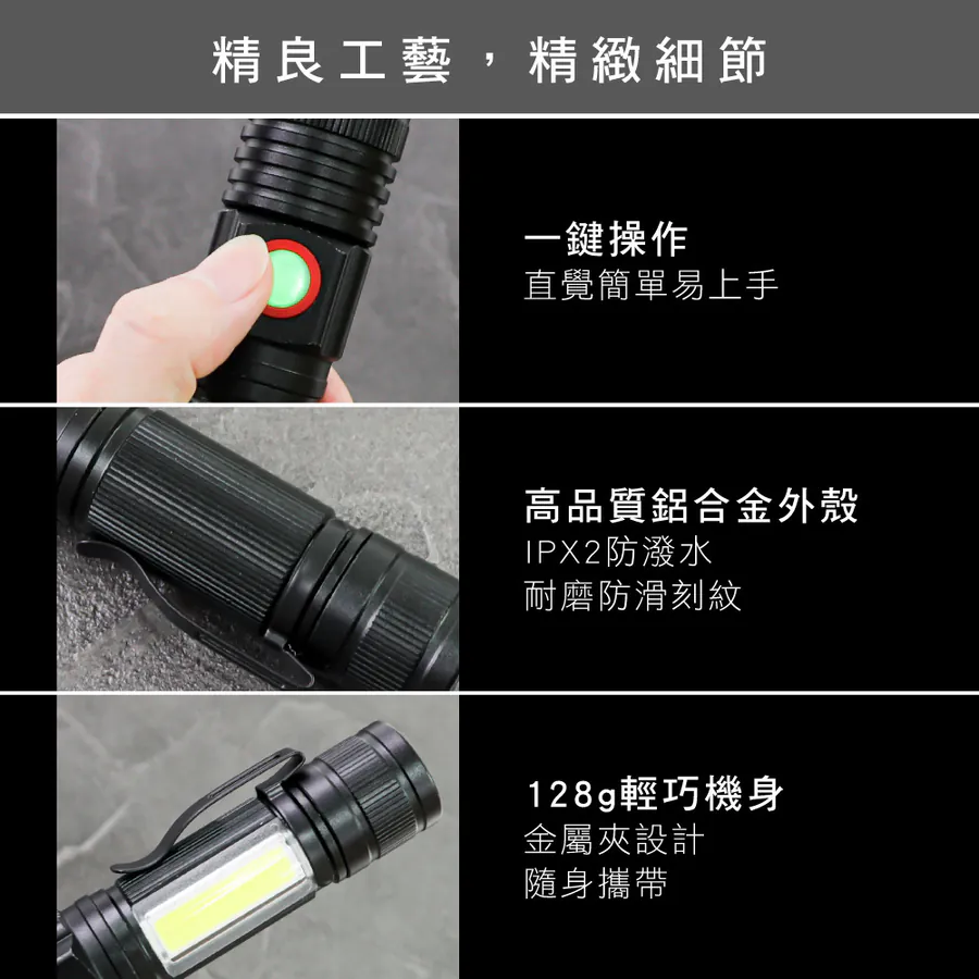 高品質鋁合金材質,堅固耐用,IPX2防水