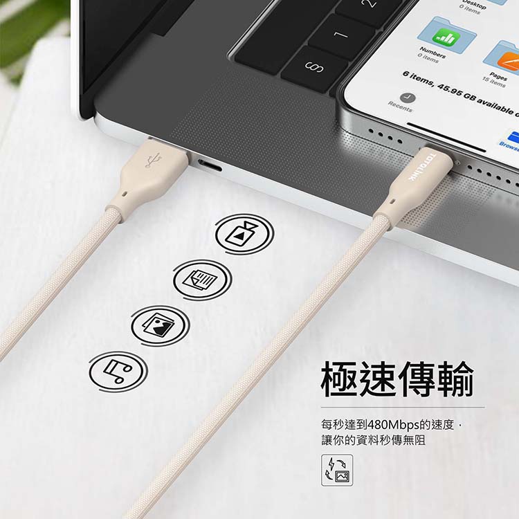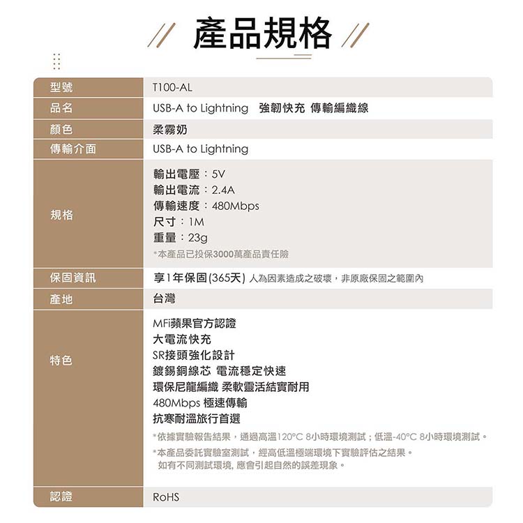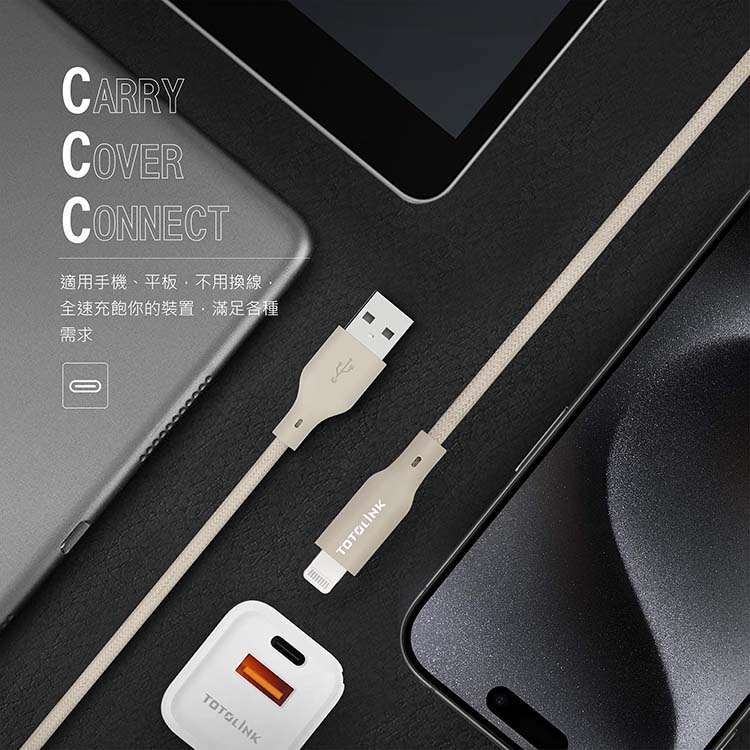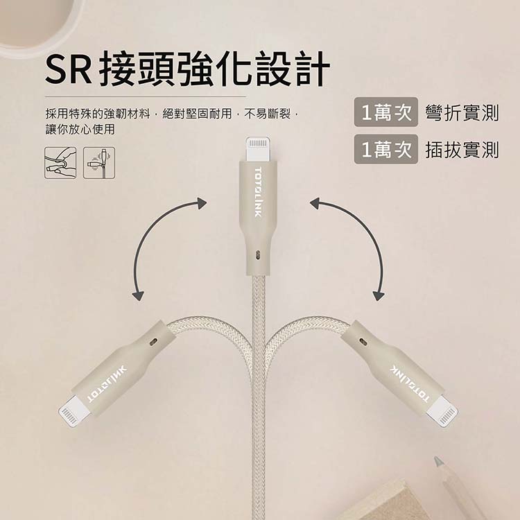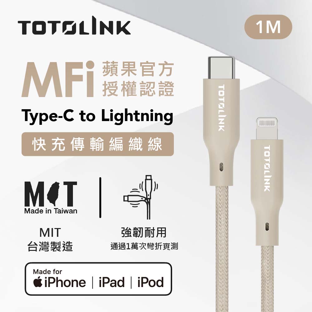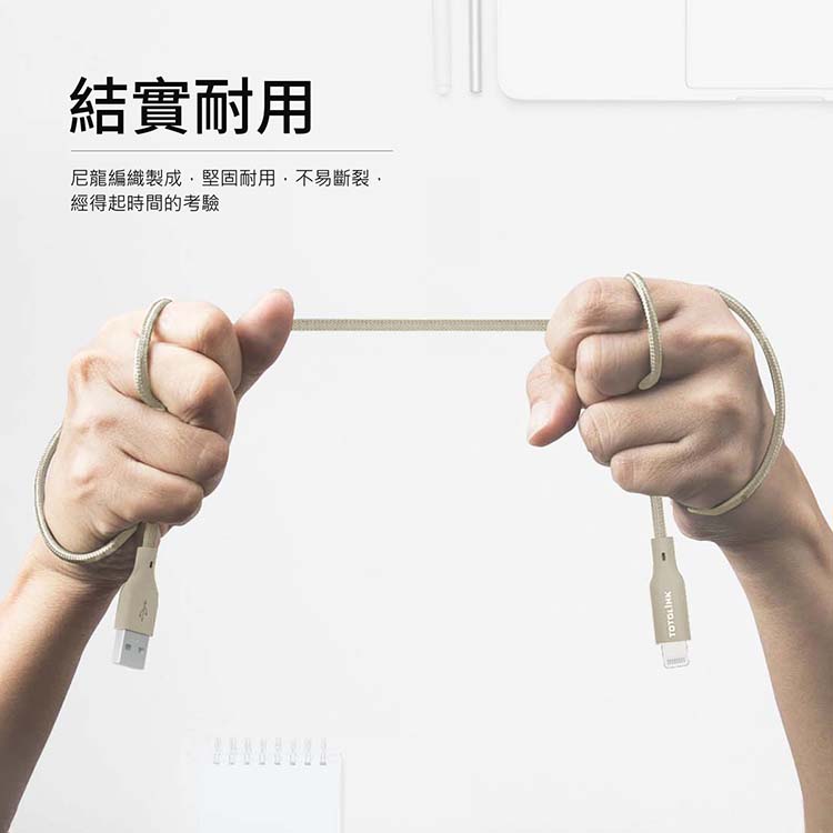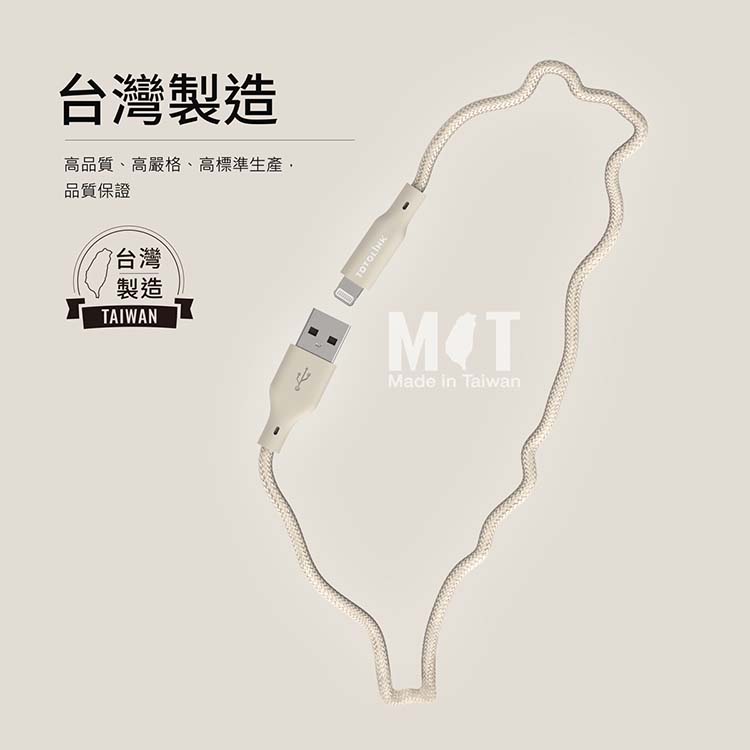 TOTOLINK 1米USB-A-Lightning強韌快充傳輸編織線-柔霧奶 T100-AL T100-CL