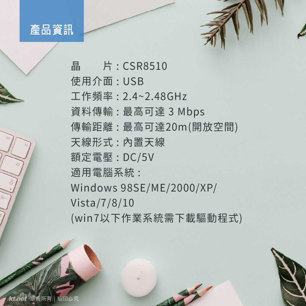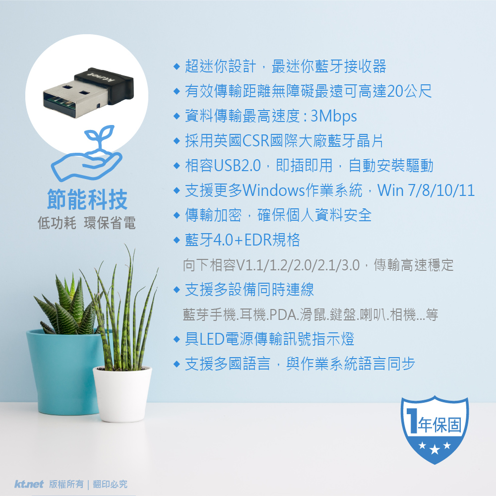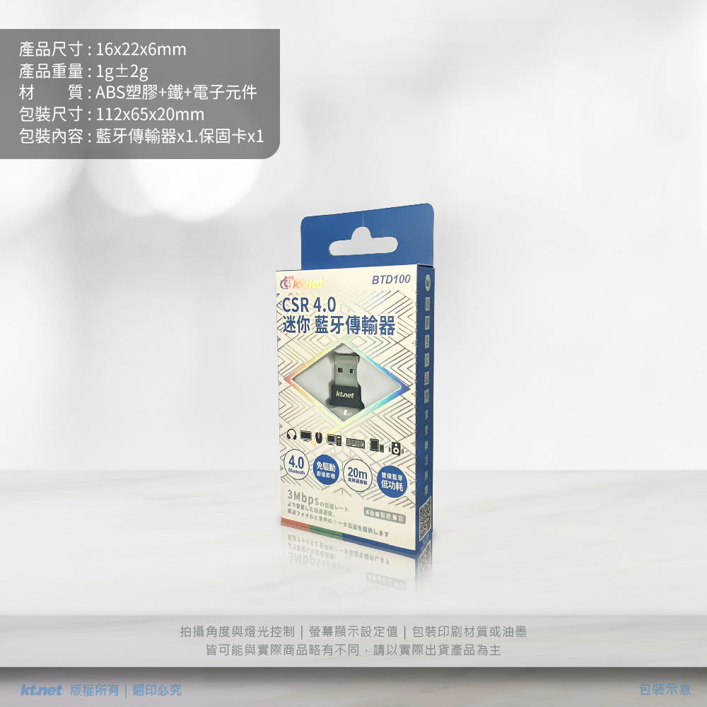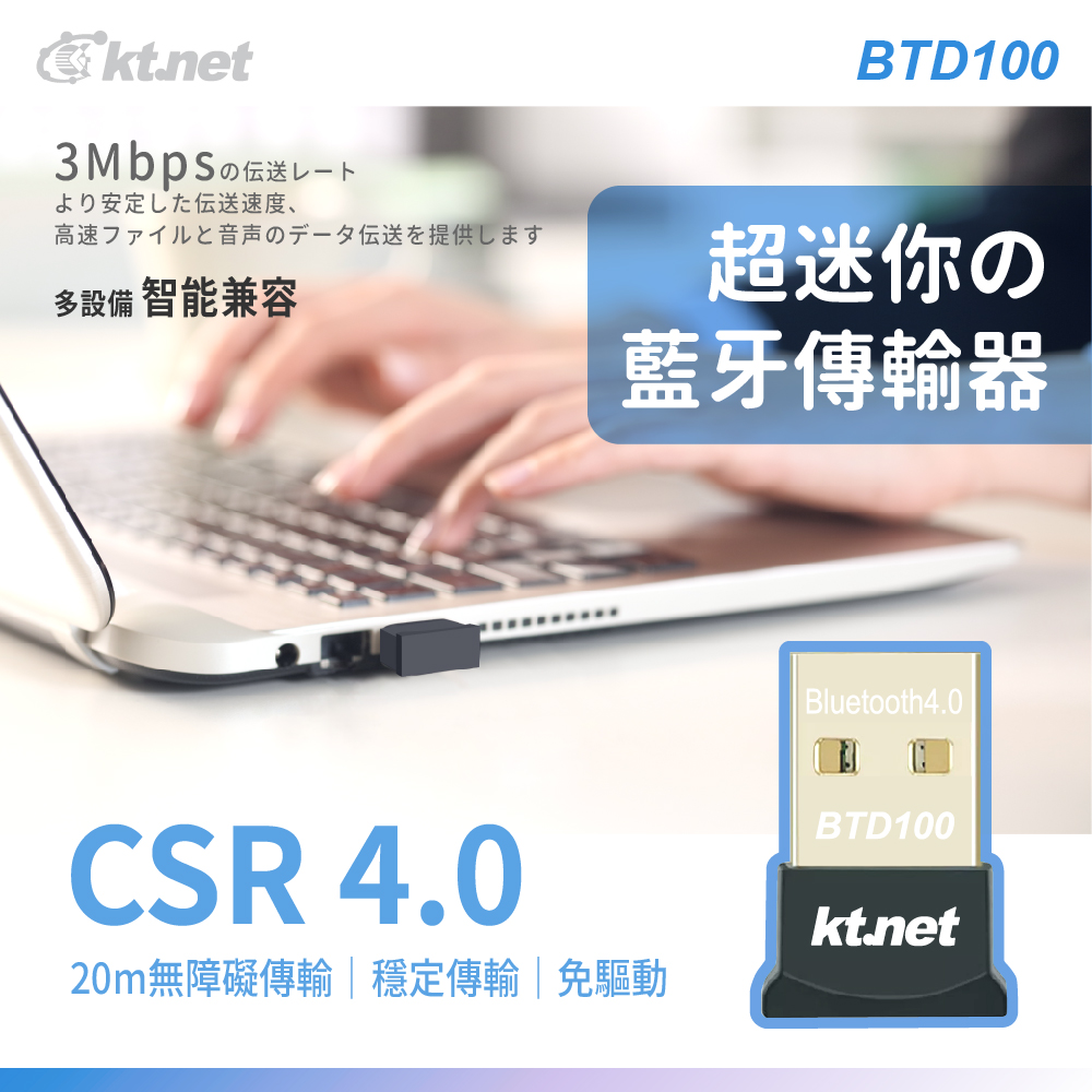 【KTnet】BTD100 CSR迷你藍牙接收器 藍牙4.0+EDR規格 支援多設備 相容USB2.0 即插即用