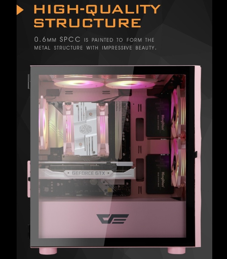 ◆包裝內容物: darkFlash DLM21 Mesh M-ATX機箱-粉色(含C6 ARGB風扇*4)