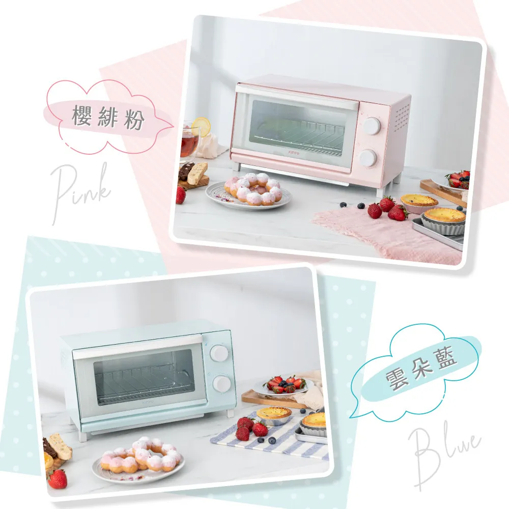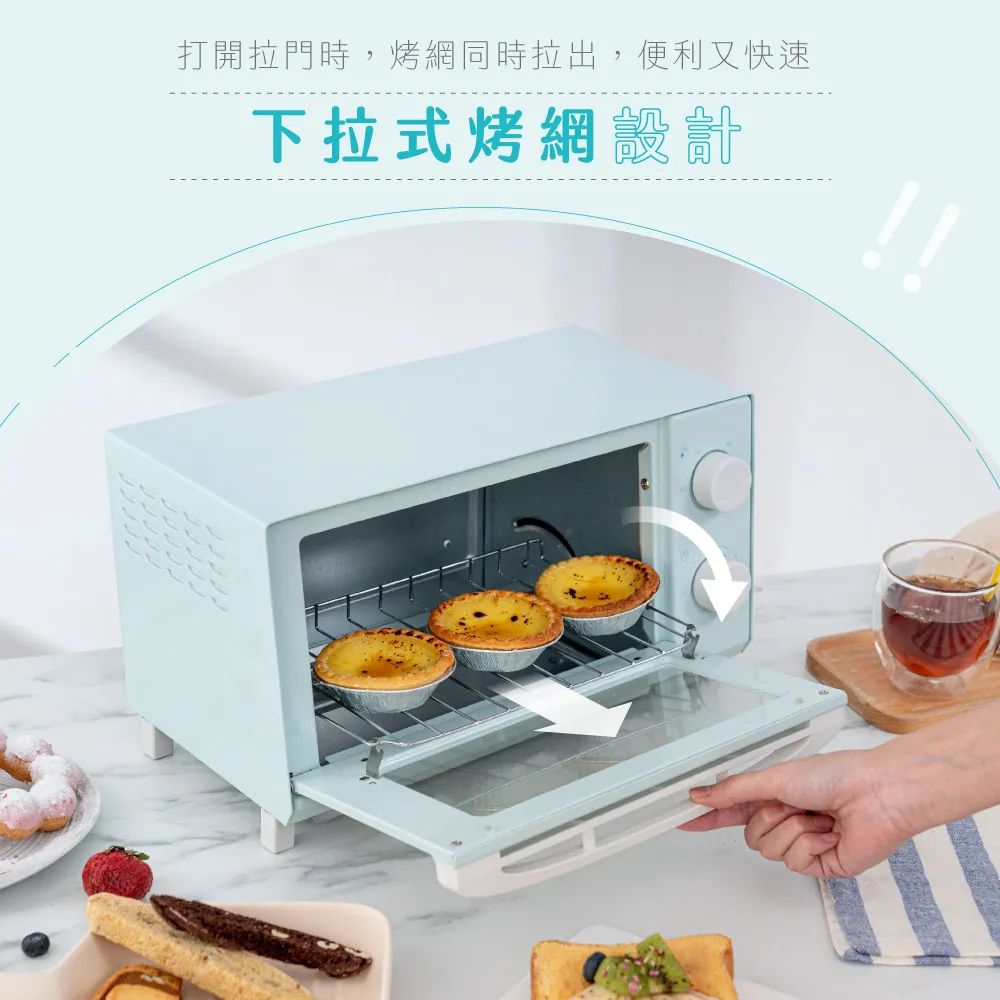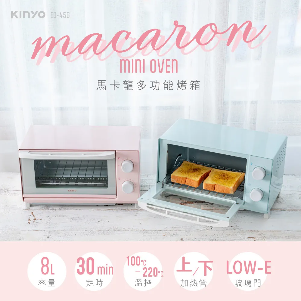 【KINYO】8L馬卡龍多功能烤箱 抽取式集屑盤 便捷又快速 配件可拆卸清潔 一洗即淨便利清潔