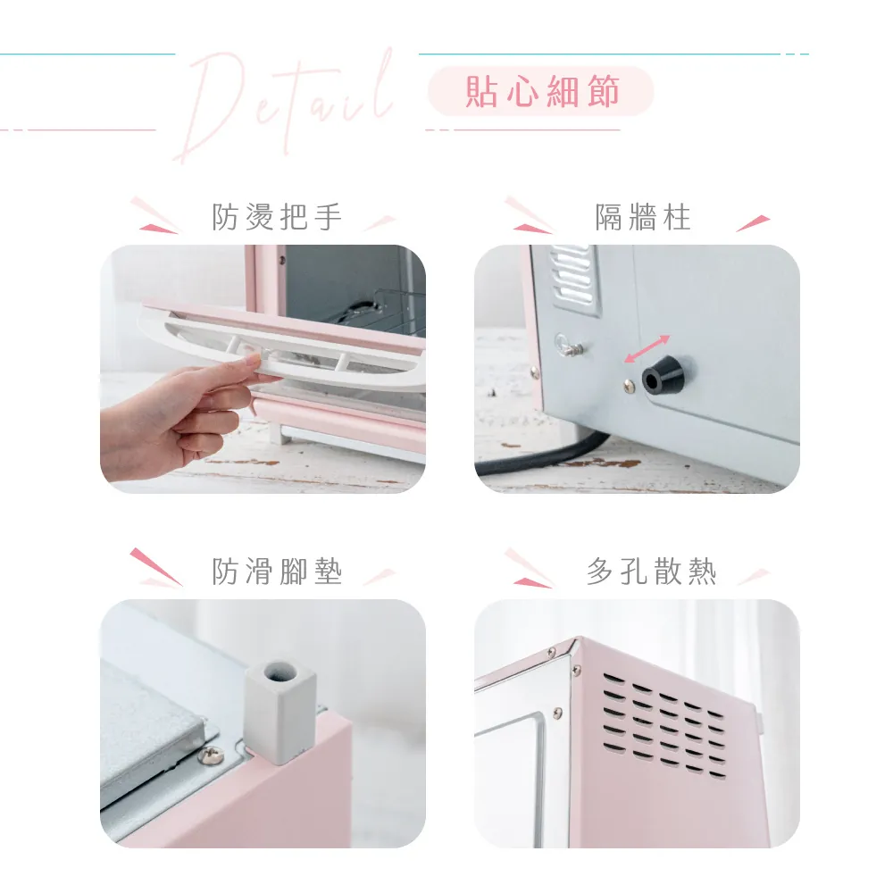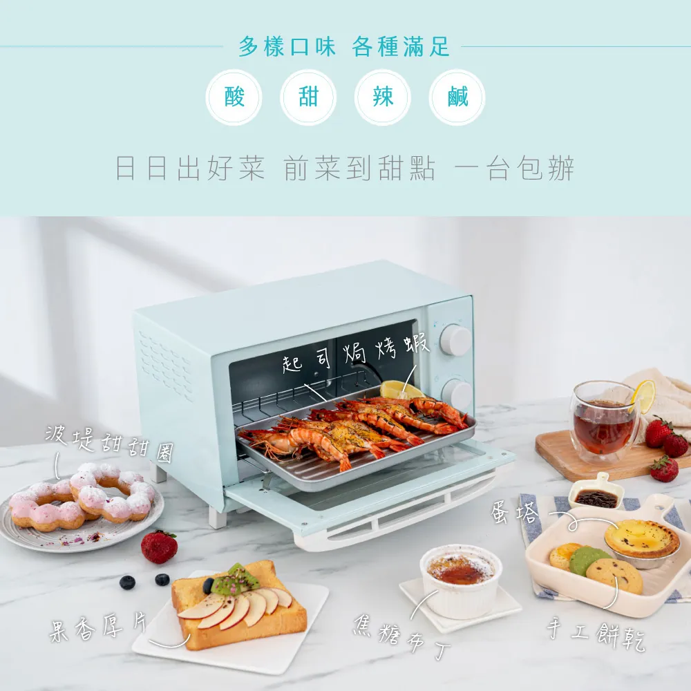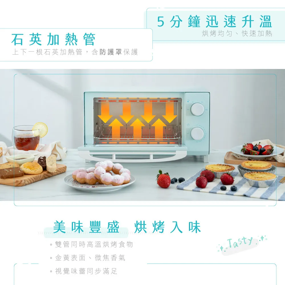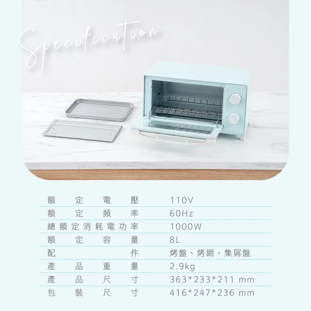 【KINYO】8L馬卡龍多功能烤箱 抽取式集屑盤 便捷又快速 配件可拆卸清潔 一洗即淨便利清潔