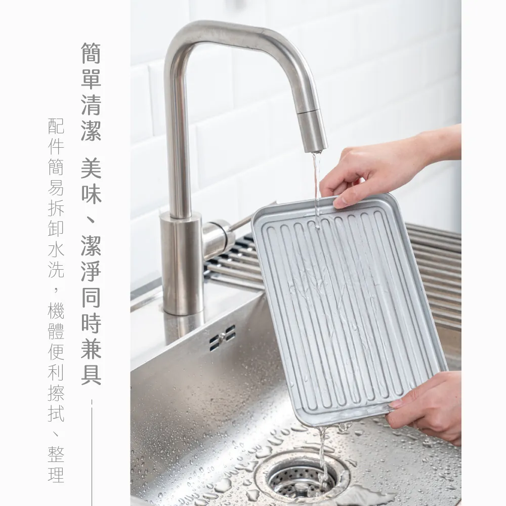 連動式下拉烤網、抽取式集屑盤,便捷又快速