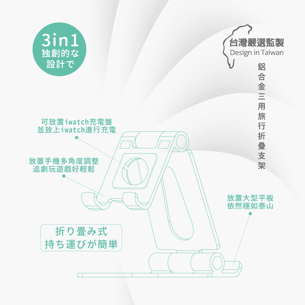KTENE ST47鋁合金3用旅行折疊手機平板支架