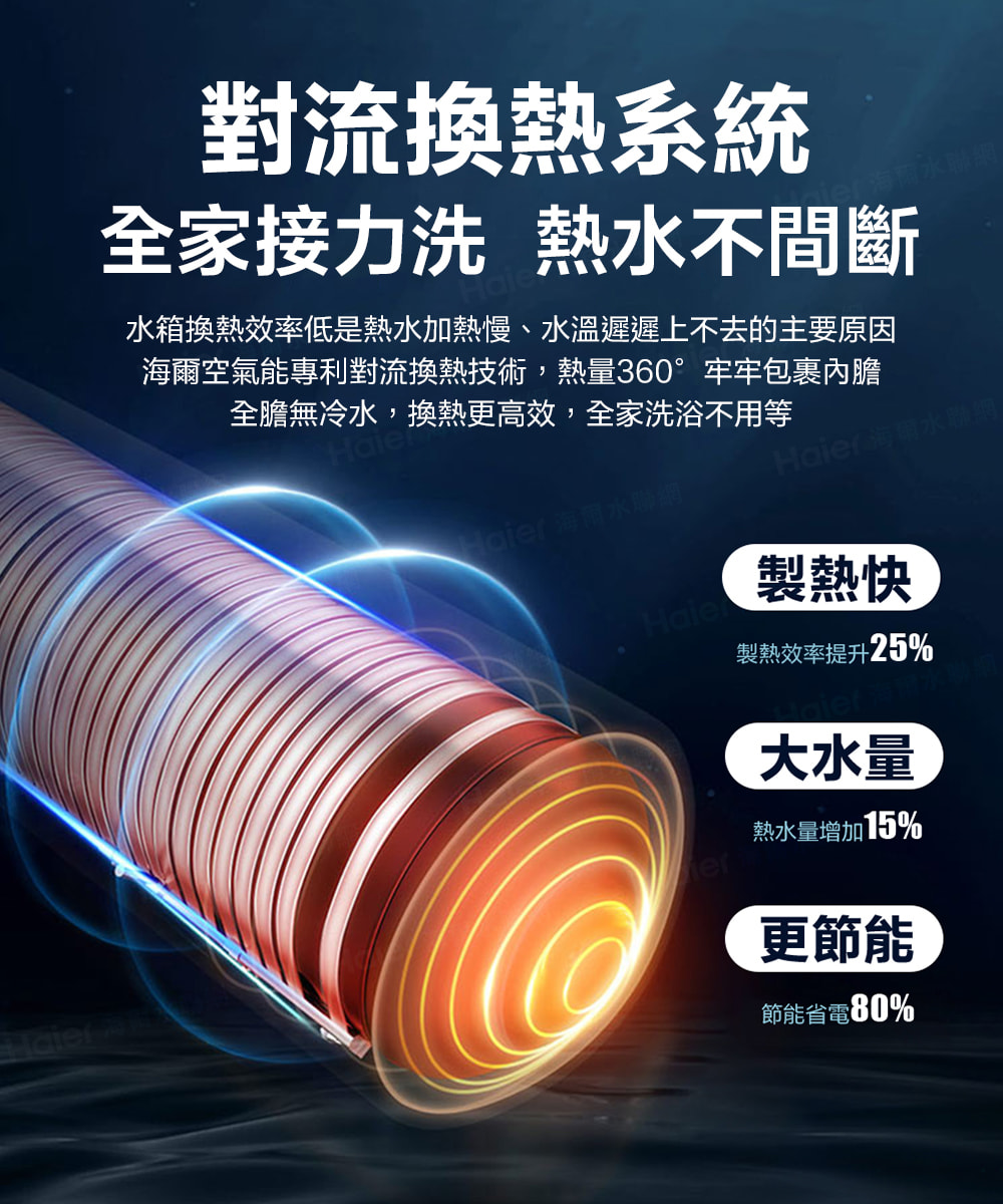 • 對流換熱系統:熱量360°換熱更高效,熱水不間斷