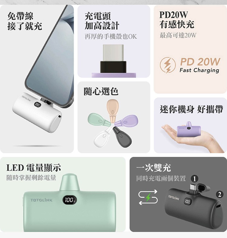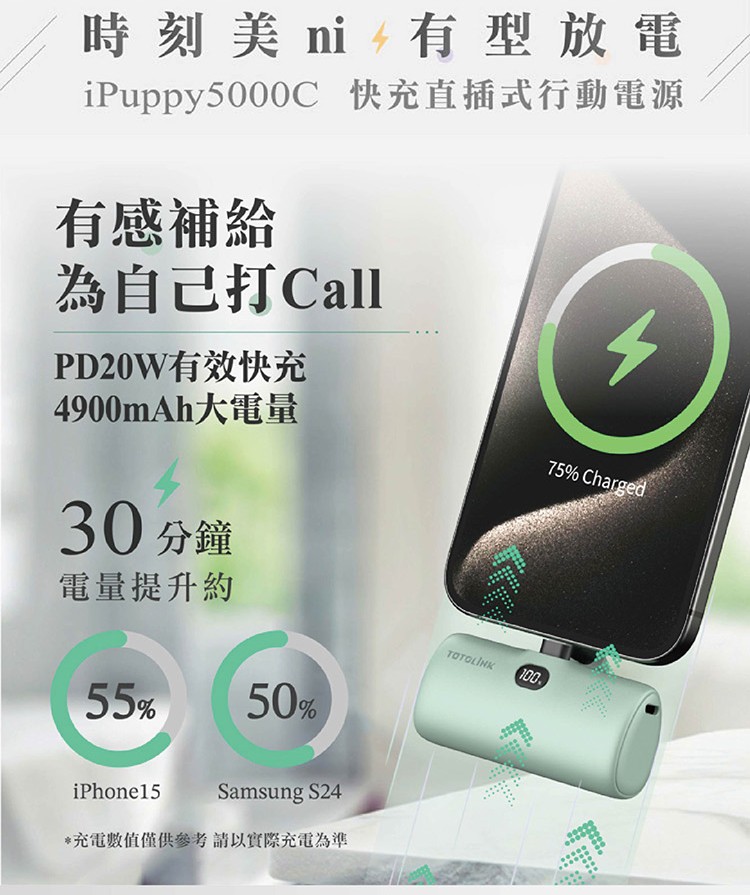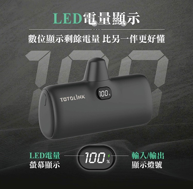 TOTOLINK 5000C USB-C Lightning 快充快充直插式行動電源