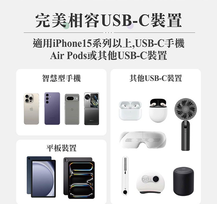 適用多款裝置 廣泛相容 (iPhone/AirPods/ Android手機、平板裝置)