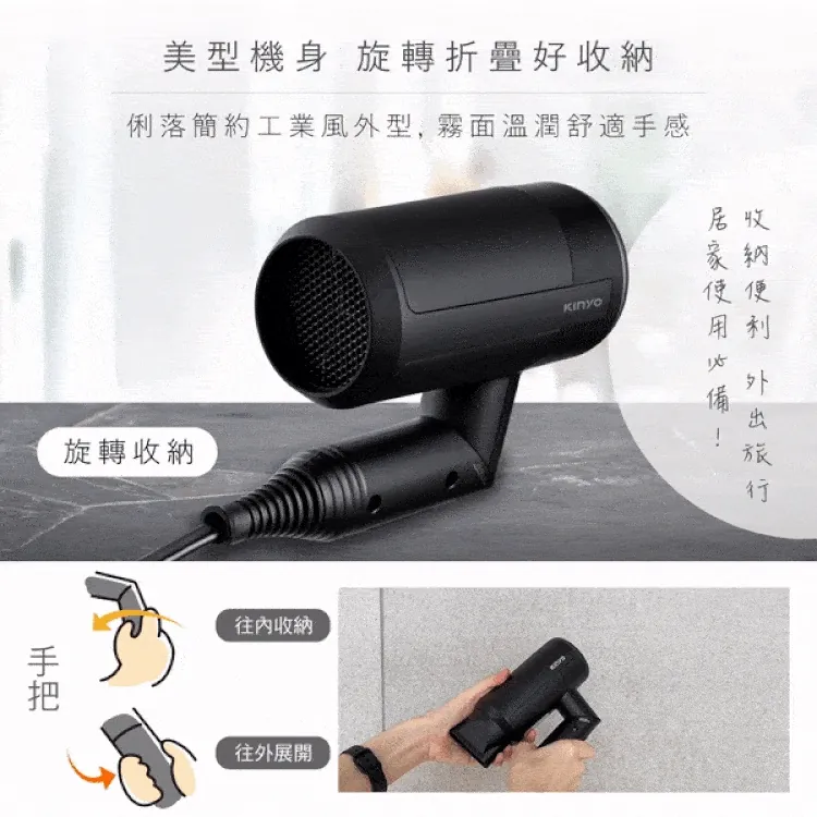 【KINYO】輕量負離子摺疊吹風機 (KH-9525)
