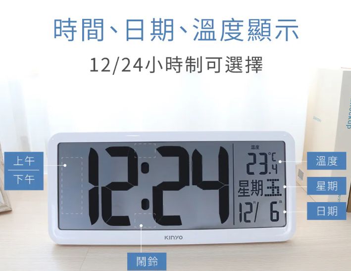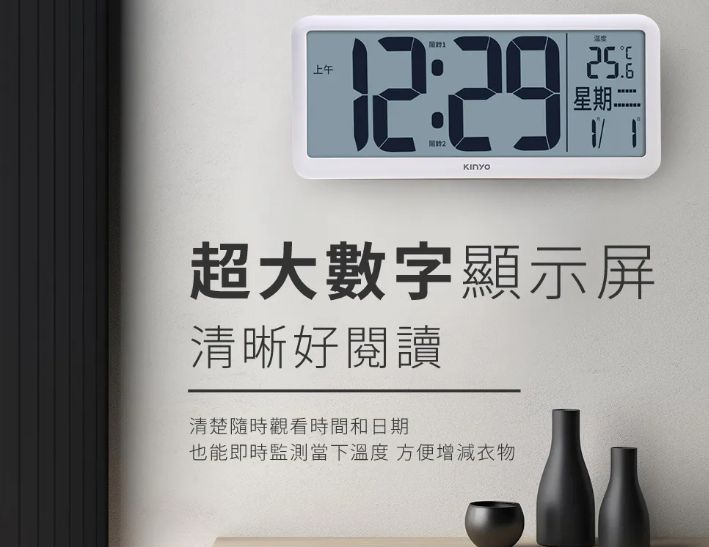 【KINYO】多功能LCD大螢幕電子鐘36cm(TD-3020)