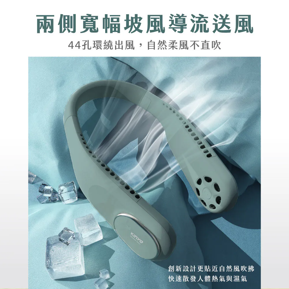 【KINYO】無葉渦輪隨行頸掛扇 (UF-373) 長髮配戴不捲頭髮 彈性矽膠軟管頸掛 綠色 棕色