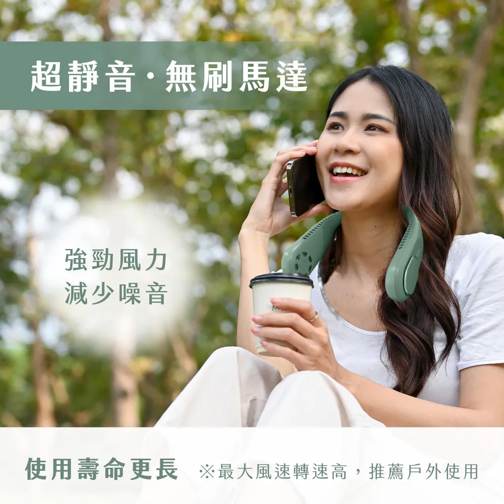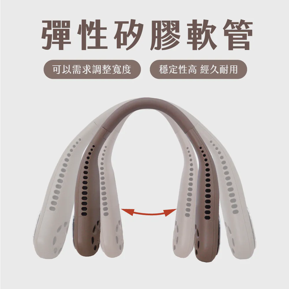 穿戴式風扇,彈性矽膠軟管頸掛,可以需求調整角度,配戴舒適