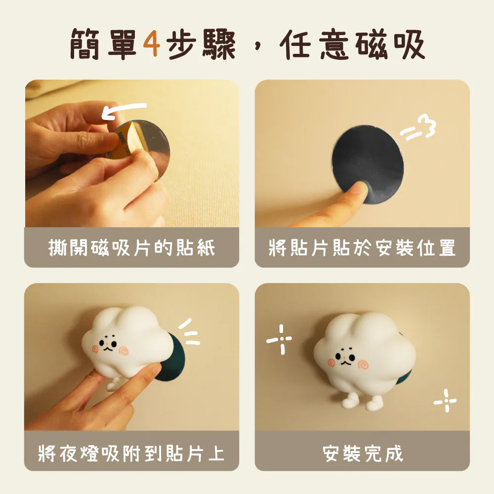 【KINYO】磁吸拍拍夜燈 小夜燈 走廊燈 床頭燈 磁吸燈 暖黃光 拍拍燈 三檔亮度 隨時 雲朵