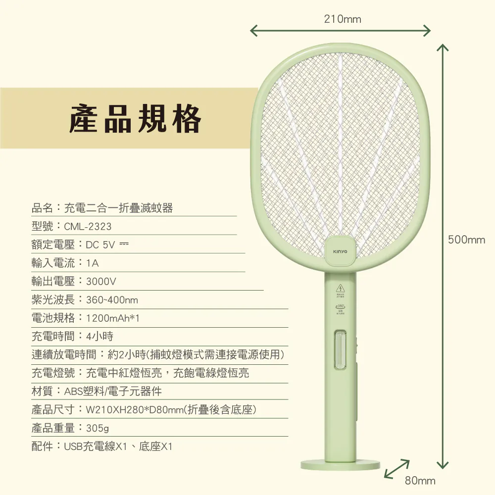【KINYO】充電二合一折疊滅蚊器 夜間紫光誘蚊 180°旋轉折疊設計 (CML-2323)
