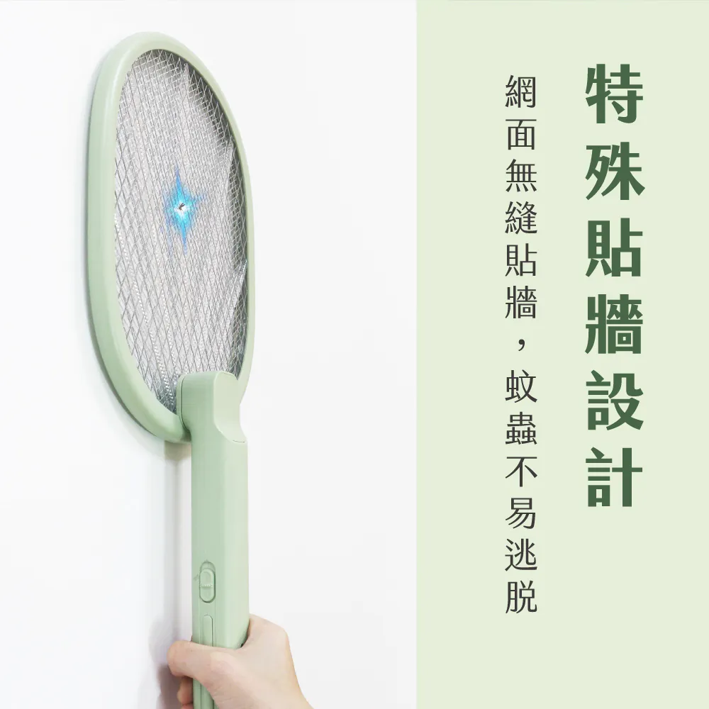 一拍兩用,日常手動電擊蚊蟲,夜間紫光誘蚊。
