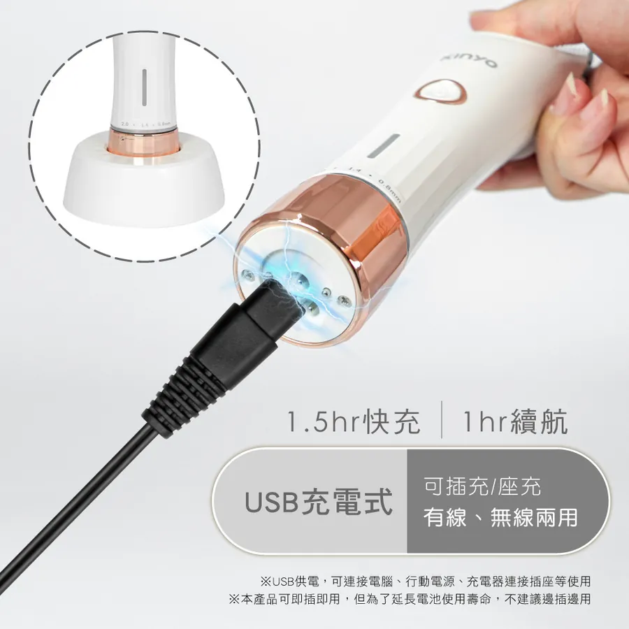配件:修剪梳x4、充電底座x1、充電線x1、潤滑油x1、清潔刷x1