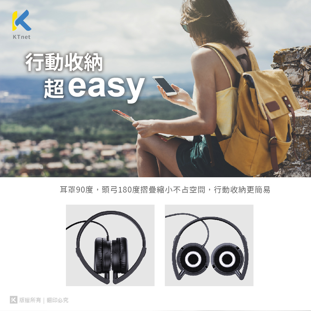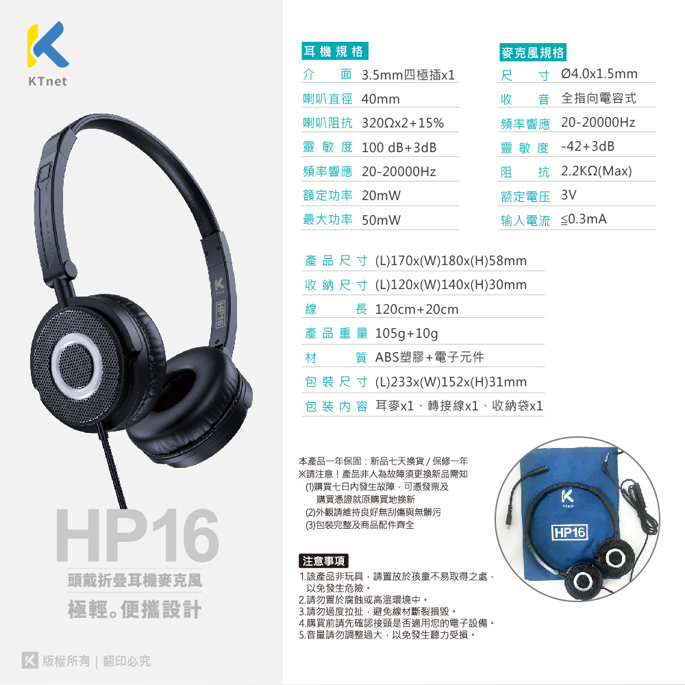 kt.net 廣鐸 HP16 電腦.手機頭戴折疊耳機麥克風 4極插+USB-C 黑
